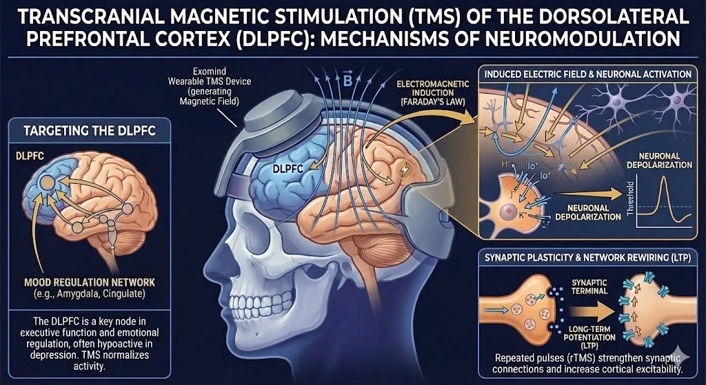 Clinical Impact: By forcing underactive neurons to fire, TMS induces Long-Term Potentiation (LTP). This is neuroplasticity in action—physically strengthening synaptic connections and increasing blood flow to starved brain regions, independent of the patient's compromised neurochemistry [27].